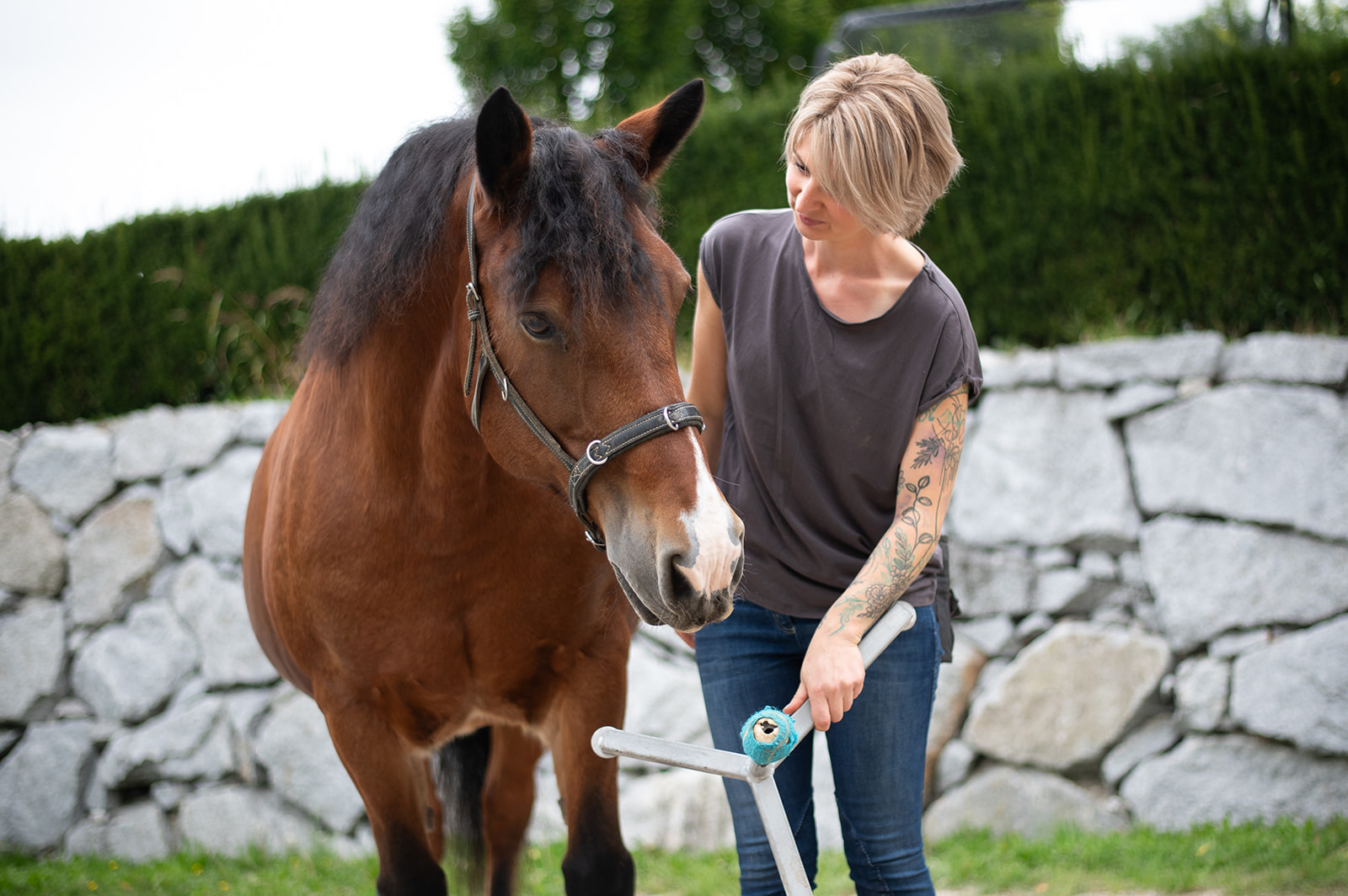 Schermaschine, Sprühflasche oder der erste Sattel: dein Pferd wird behutsam an neue Gegenstände herangeführt und lernt, optimistisch und neugierig an neue Dinge heranzutreten