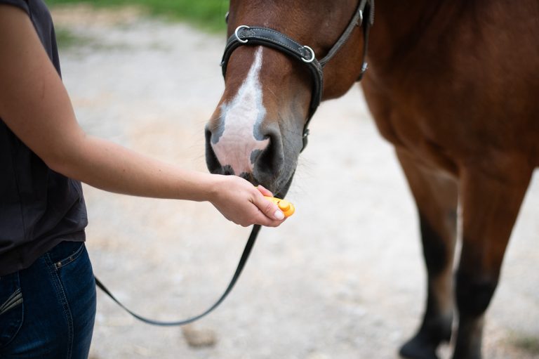 Durch die Arbeit mit Kooperationssignalen kann dein Pferd aktiv am Training teilnehmen und dir jederzeit mitteilen, wenn es eine kurze Pause braucht bzw. bereit ist, wieder weiterzumachen. Dieses Mitspracherecht motiviert das Pferd zusätzlich, die verschiedenen Übungen und Maßnahmen gelassen zu akzeptieren.