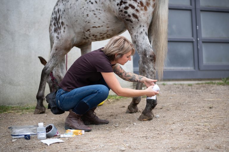 In Notsituationen geht es oft hektisch zu. Gerade dann ist es wichtig, dass dein Pferd zuverlässig stillsteht, sich überall anfassen lässt und keine Angst vor Verbandsmaterialen zeigt. Damit es im Ernstfall auch sicher klappt, sollten solche Situationen vorher in Ruhe geübt werden.